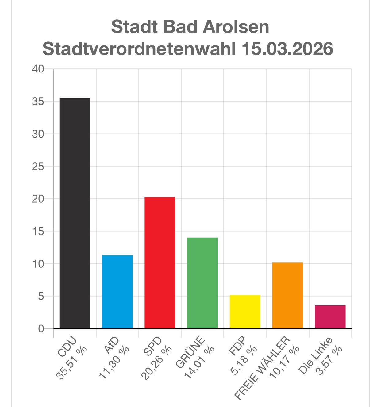 Ein ganz großes Dankeschön an alle Wähler, die diesen tollen Erfolg möglich gemacht haben! Mit über 35% sind wir als CDU Bad Arolsen aus der Kommunalwahl als unangefochten stärkste Kraft hervorgegangen und konnten sogar gegenüber der letzten Wahl noch einen Sitz hinzugewinnen. Wir freuen uns riesig. Das Wahlergebnis ist uns Auftrag und Verpflichtung für die nächsten fünf Jahre zugleich: Für Bad Arolsen und seine Stadtteile, für unsere Heimat! 🖤💪🎊🎉 #kommunalwahlhessen2026 #cduhessen #wahlsieg #waldeckfrankenberg #badarolsen