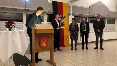 Marko Lambion hielt die Laudatio zur Ehrung von Siegfried Sauer, der über viele Jahrzehnte die kommunale Jugendhilfe prägte. Hier konnte Marko Lambion aus eigener Erfahrung berichten, da er bereits als junger Mann von Siegfried Sauer in Erster Hilfe geschult wurde.