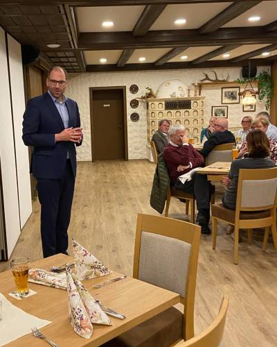 Nach guter Tradition hat sich die CDU Bad Arolsen am 14.11.2025 wieder zahlreich im Landgasthof Teuteberg in Schmillinghausen zu einem geselligen Abend mit vorweihnachtlichem Gänseessen eingefunden. Dabei waren auch unser Staatsminster Armin Schwarz sowie unser Bundestagsabgeordneter Jan-Wilhelm Pohlmann. Bei guten und interressanten Gesprächen zu aktuellen kommunal- und bundespolitischen Themen haben wir gemeinsam einen gemütlichen Abend in unserer schönen Heimat verbracht.